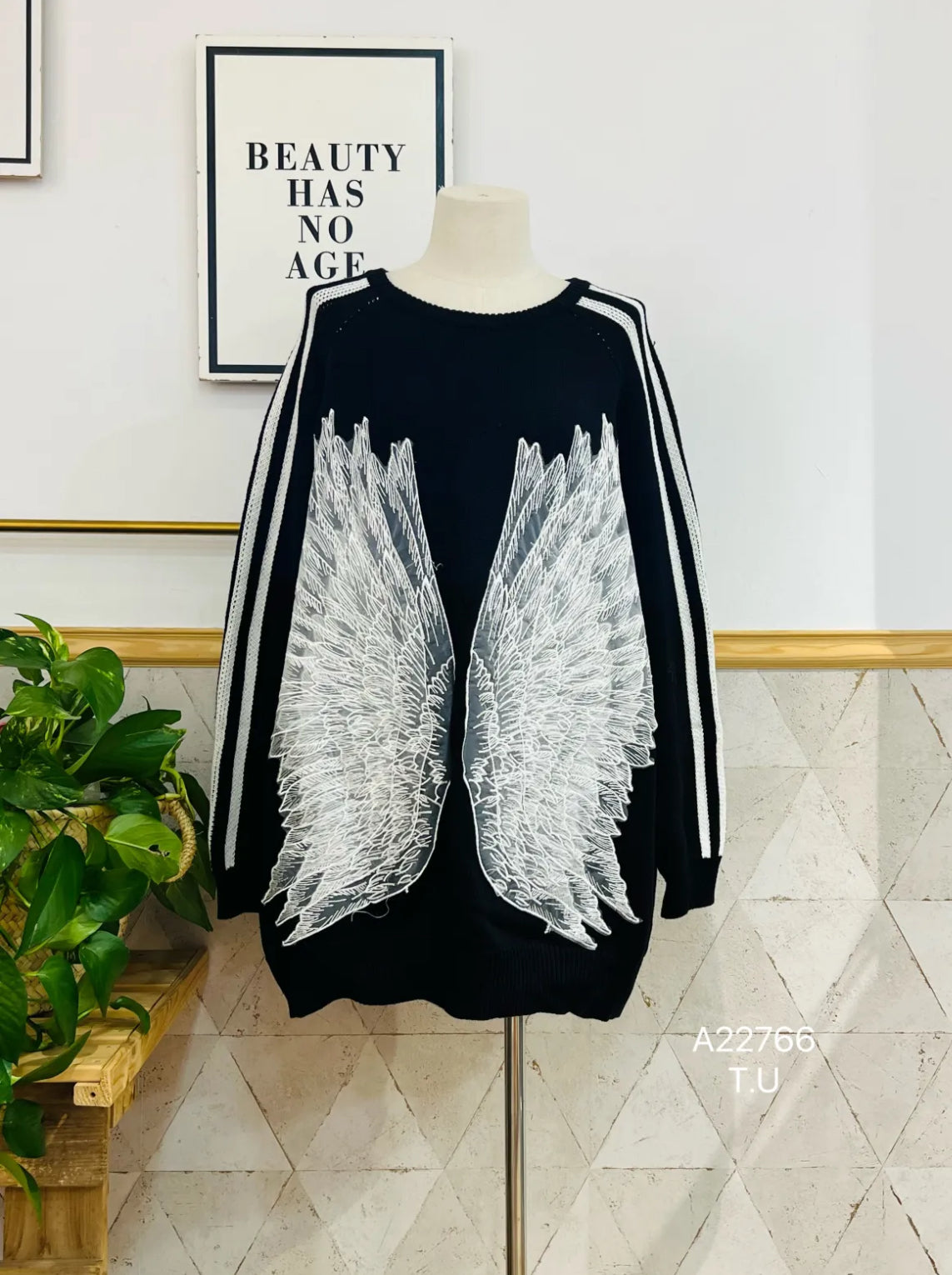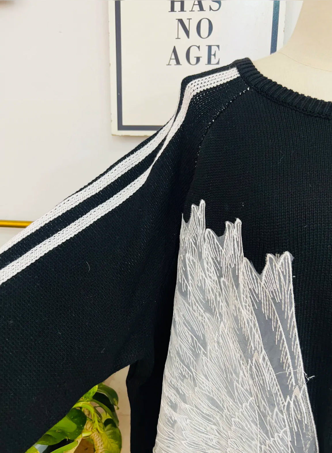 Jersey de punto con detalle de alas de tul en la parte delantera